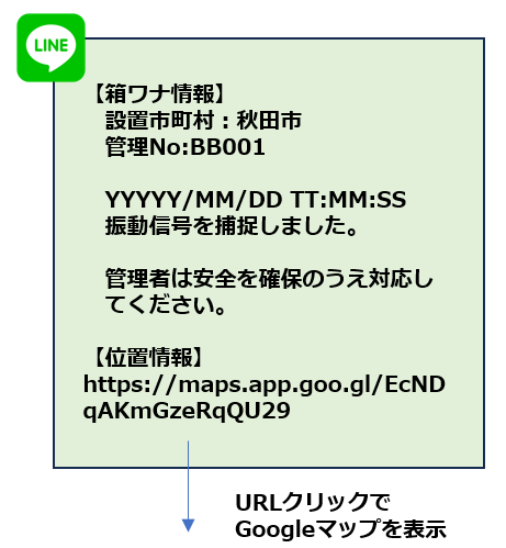 4.選択した箱罠で、クマ捕捉と推測される振動信号を捕捉した時、以下のメッセージが送信される